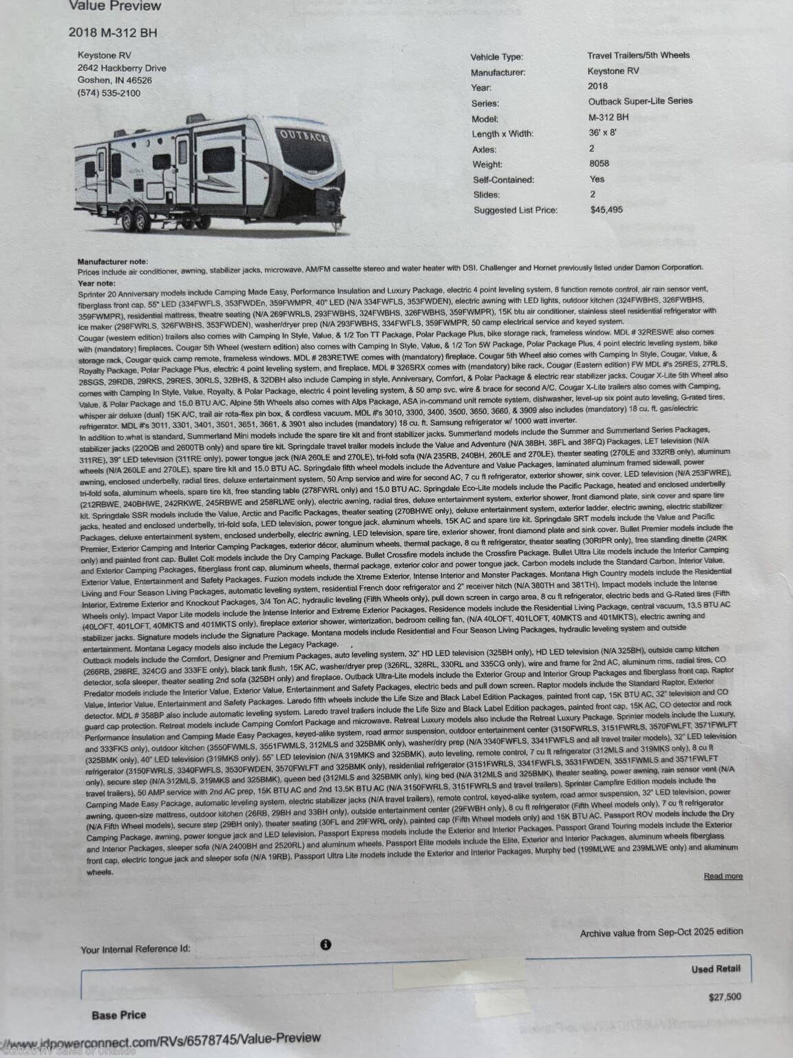 Used 2018 Keystone Outback 312BH