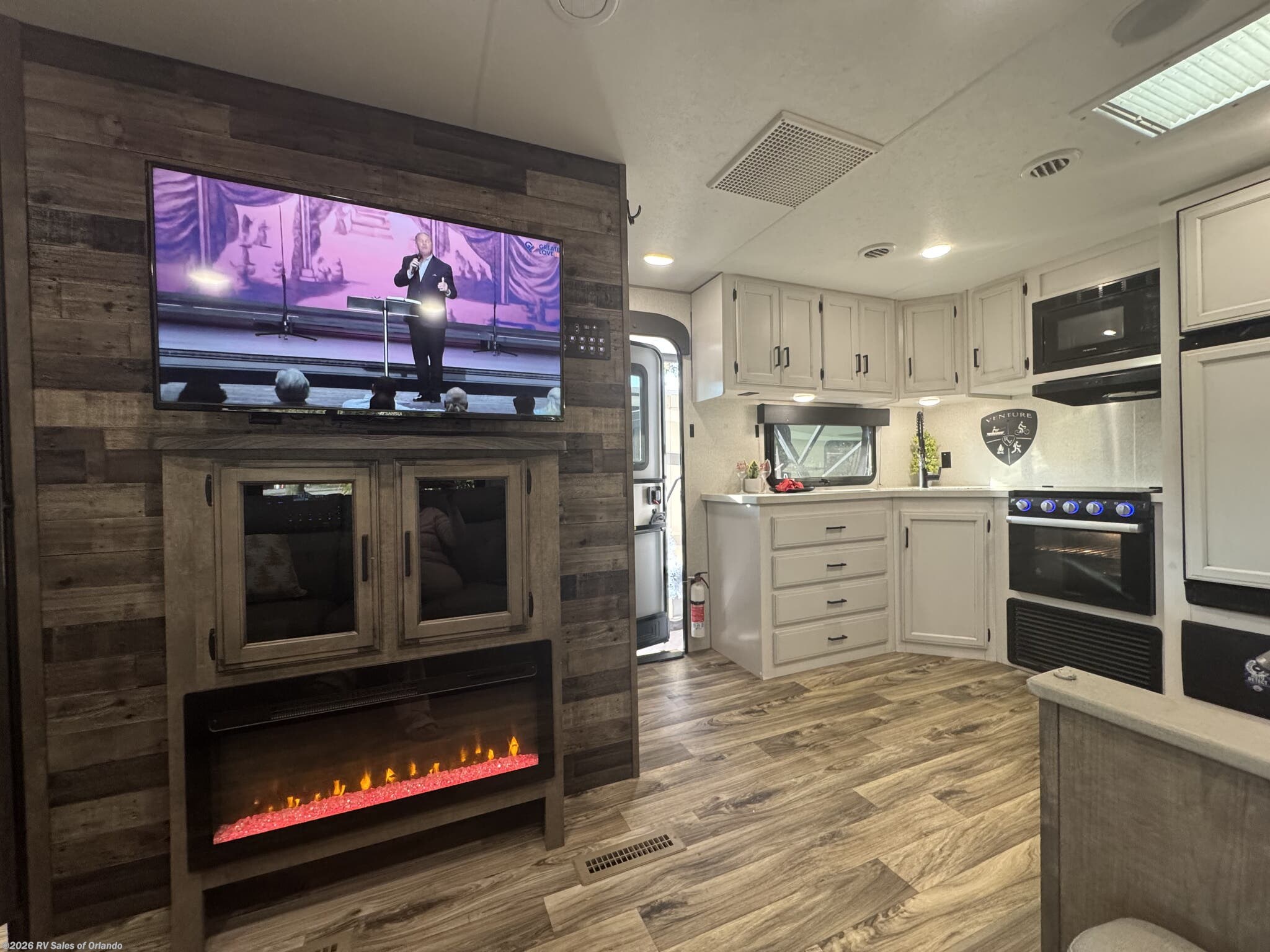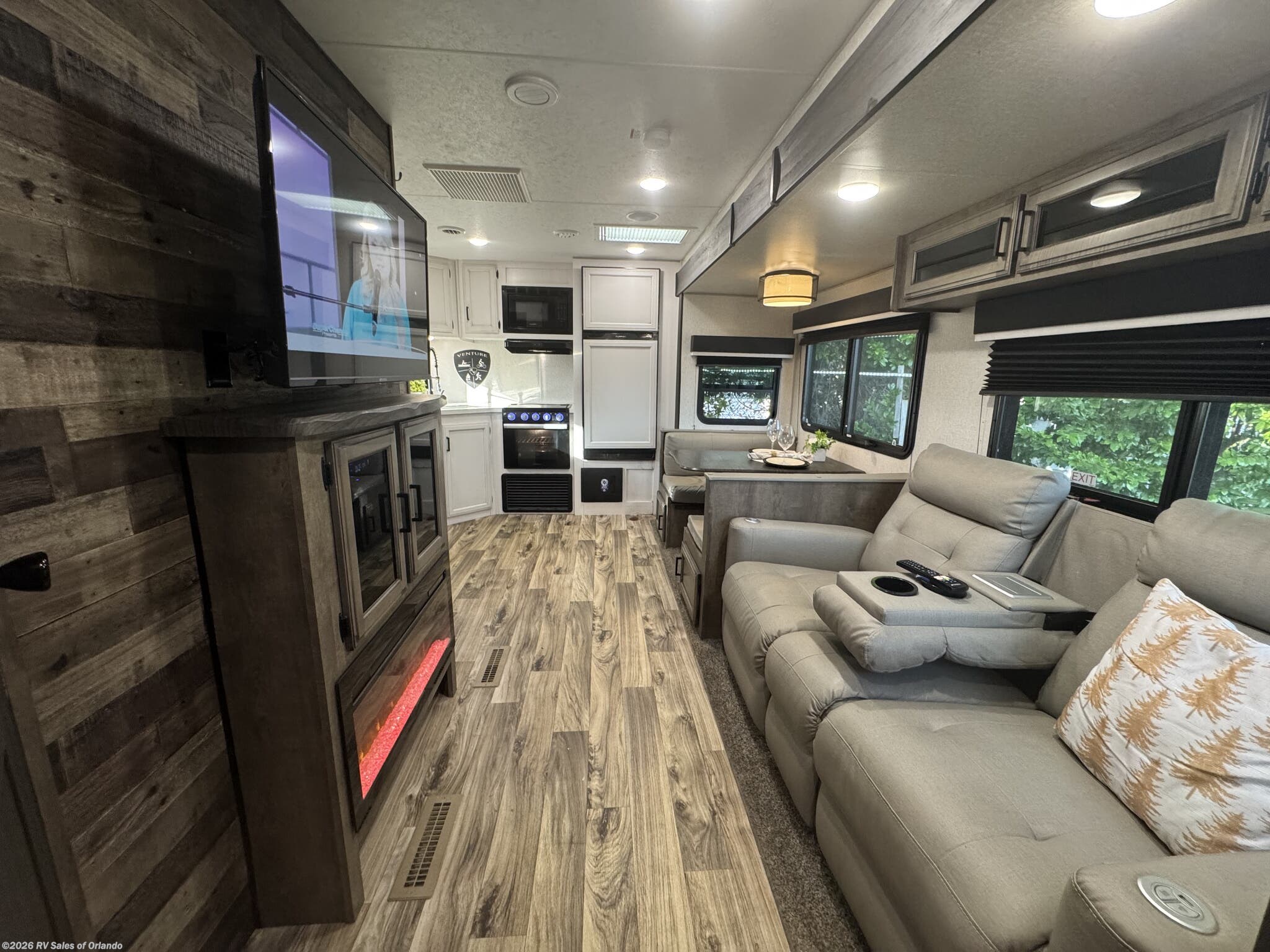 2 fire places - 3 burner stovetop with oven - iRV app for controling slides, lights and awnings - power tongue jack - power stabilizer jacks
